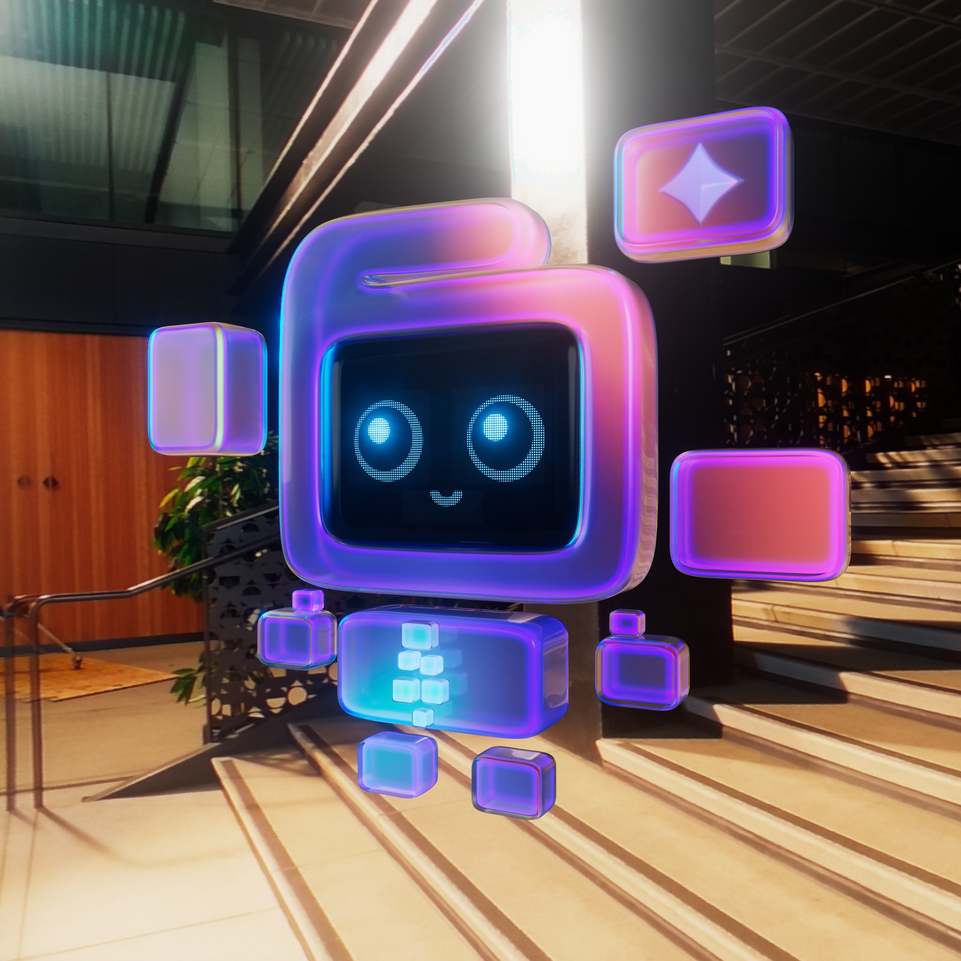 "Built from floating, modular shapes with an undulating gradient core, Buddy radiates curiosity and charm. An expressive digital companion that feels tactile and alive within the physical world."