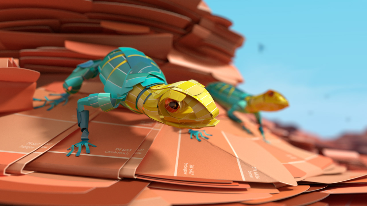 The Sherwin campaign is an ongoing exploration of a world created by color. Although the medium and techniques used remain relatively similar, each spots unique approach to storytelling produces a new and unexpected journey for the viewer. This iterations focus is the migration of numerous species to embrace in a single beautiful spectacle. My role in this project ranged from set design/modeling to lighting and animation.